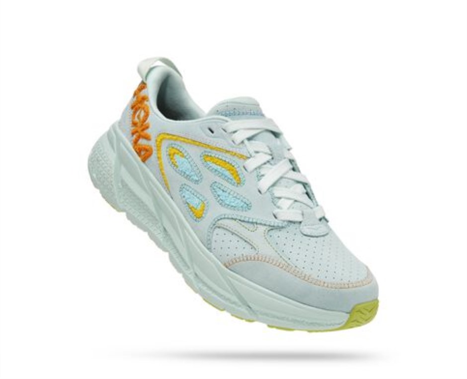 Hoka Clifton L Stickerei Blaues Glas Strahlendes Gelb
